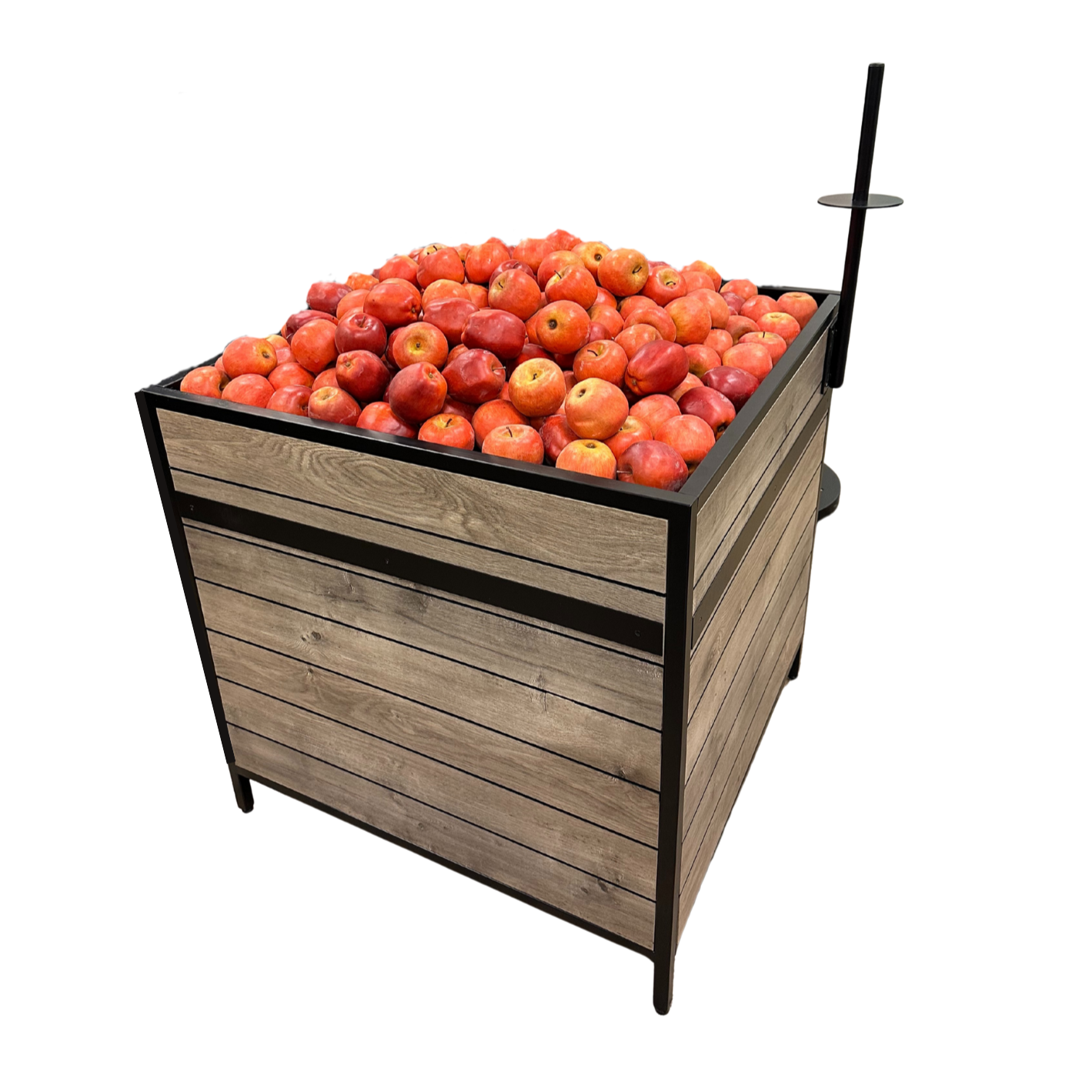 Engineered for strength and style, this modern Produce Bin combines a durable steel frame with rustic wood-grain panels.